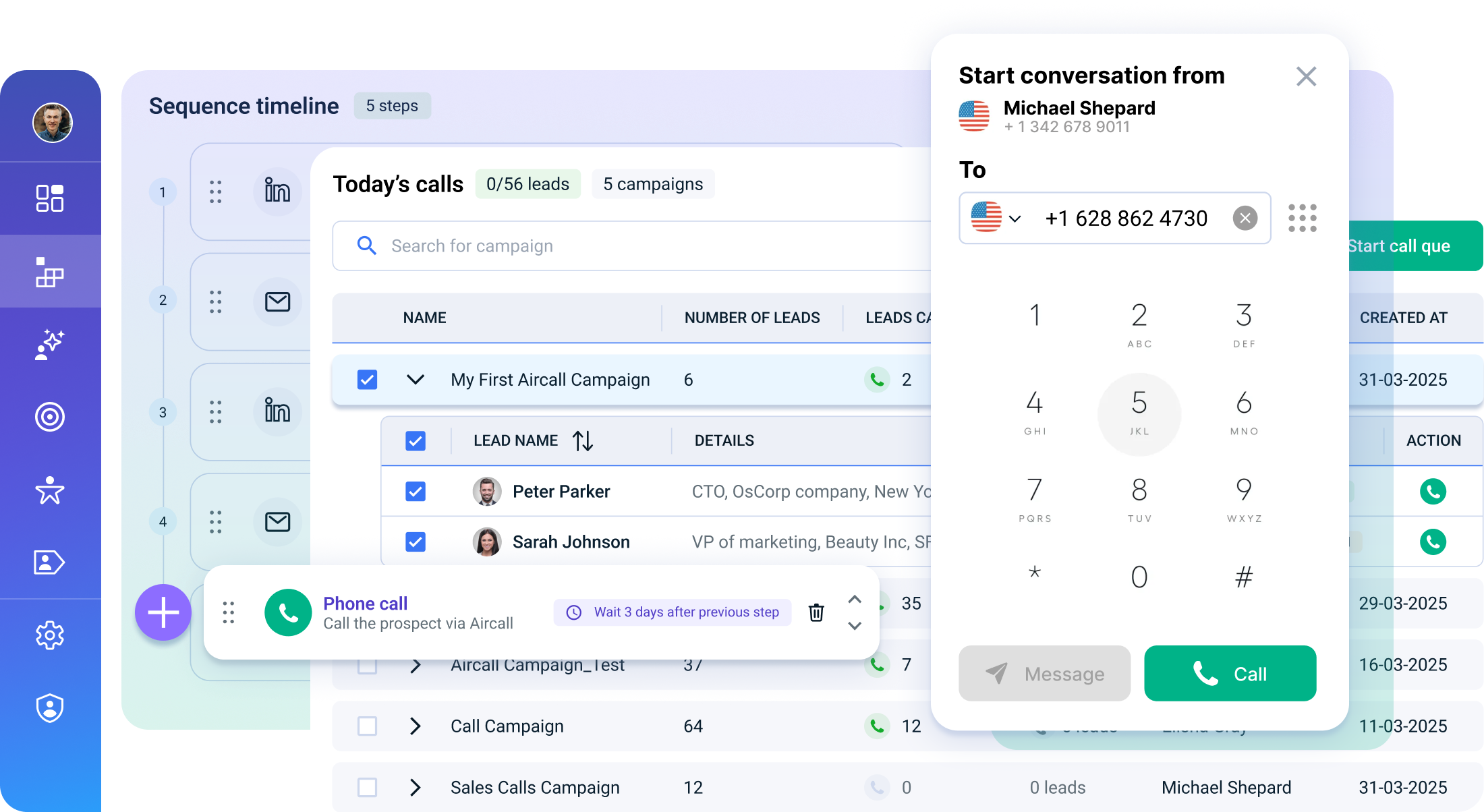 Place as many call steps as you want alongside multimedia email and LinkedIn messages in the Sequence Builder.