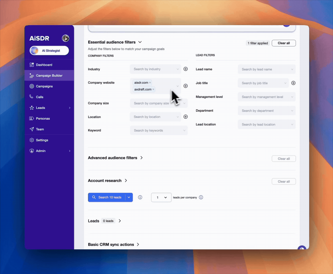 When building a campaign, you can now set how many leads to include from a company. AiSDR automatically adjusts your audience size based on that limit, giving you a more balanced and accurate view of your total reach.