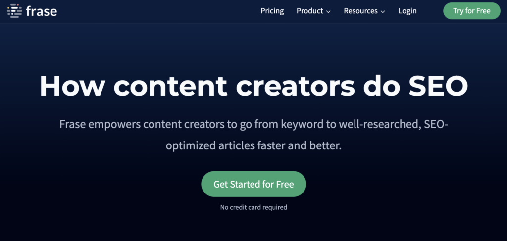 Frase is an SEO content optimization tool that helps you create content for your target keywords and improve your rankings. It automatically analyzes top search results and your competitors’ keywords to generate content that Google and your website visitors will love.