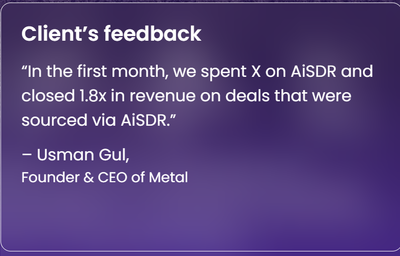 Alt text: AiSDR review by Usman Gul, Metal’s founder and CEO. Source