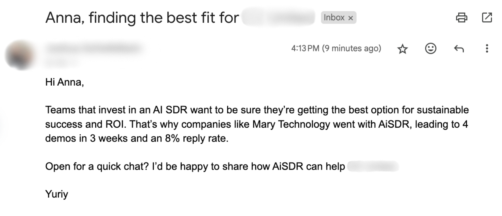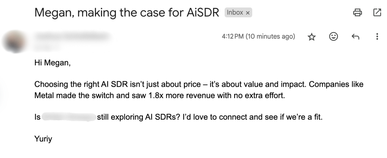 Pretty much instantly. If someone comes back to your site, AiSDR can recognize them and use their previous activity to personalize outreach, like skipping the intro or referencing what they’ve already seen.